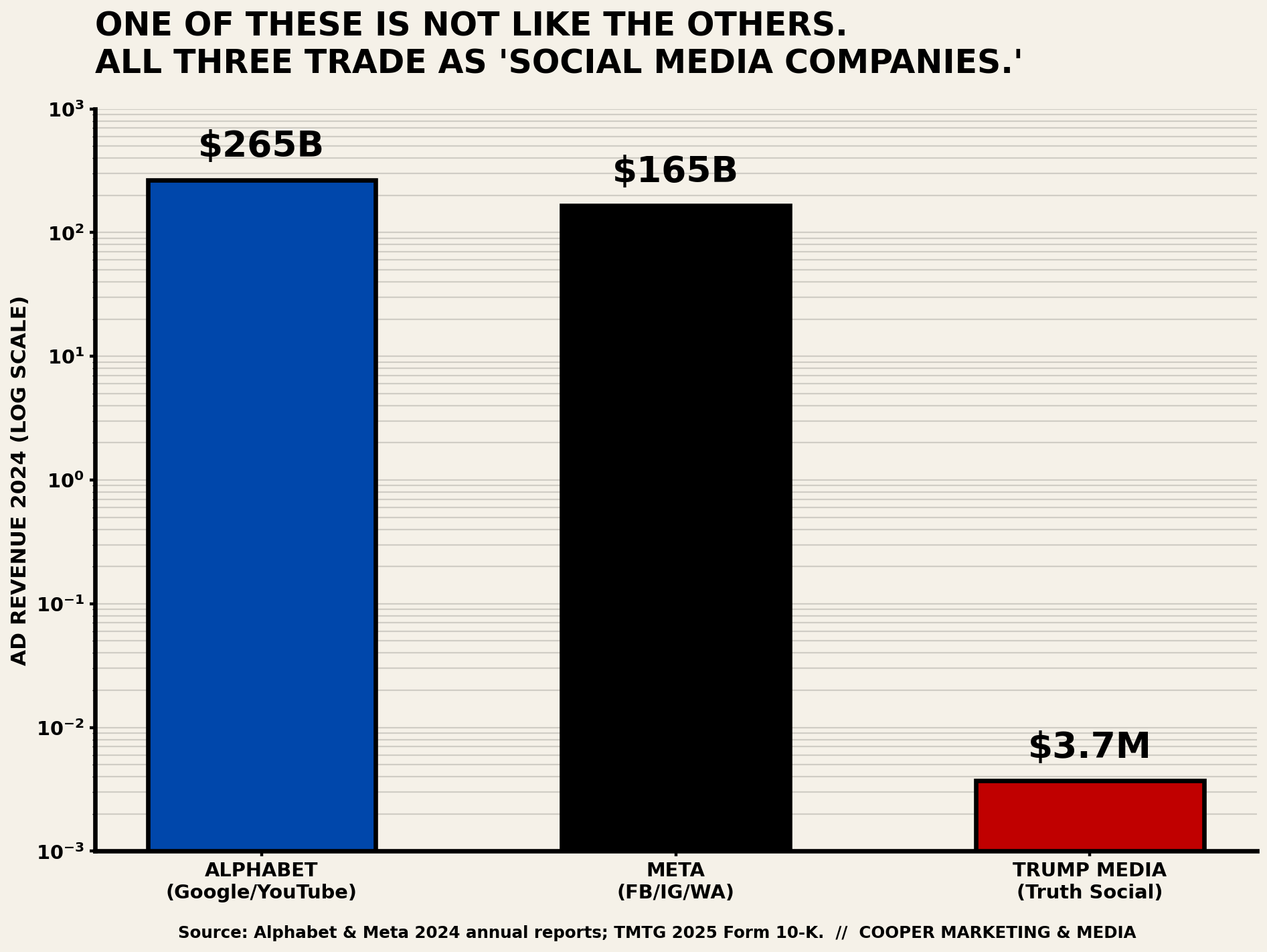 Revenue, per the company’s own 2025 10-K filing with the SEC: three point seven million dollars. For the entire year. All of it. Meta and Alphabet each generated more advertising revenue every 30 seconds than Truth Social did in 12 months. Net loss for 2025: seven hundred and twelve million dollars, though the company is careful to point out that most of that is unrealized paper losses tied to crypto-related securities it now holds on its balance sheet. Strip out the non-cash items, and the company managed a small positive operating cash flow last year, which is technically a milestone and a fairly low bar to clear.