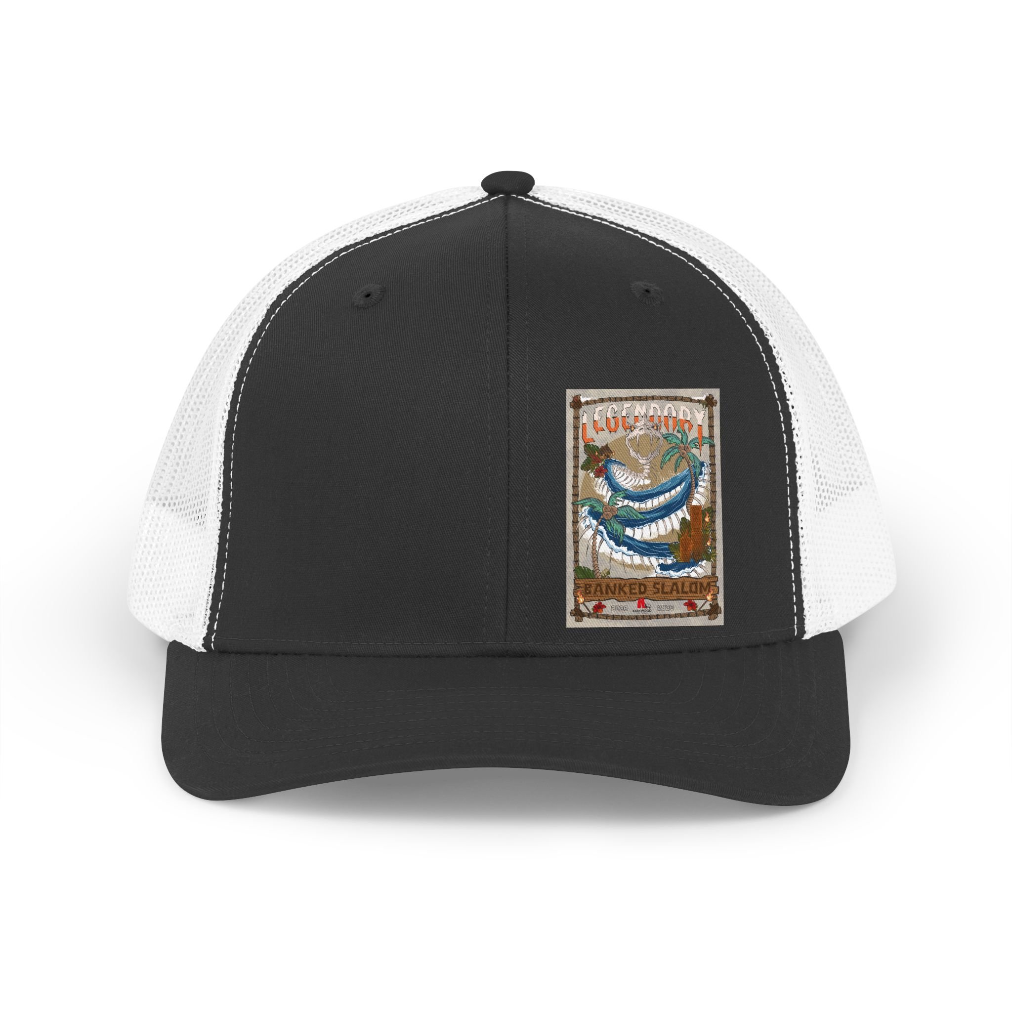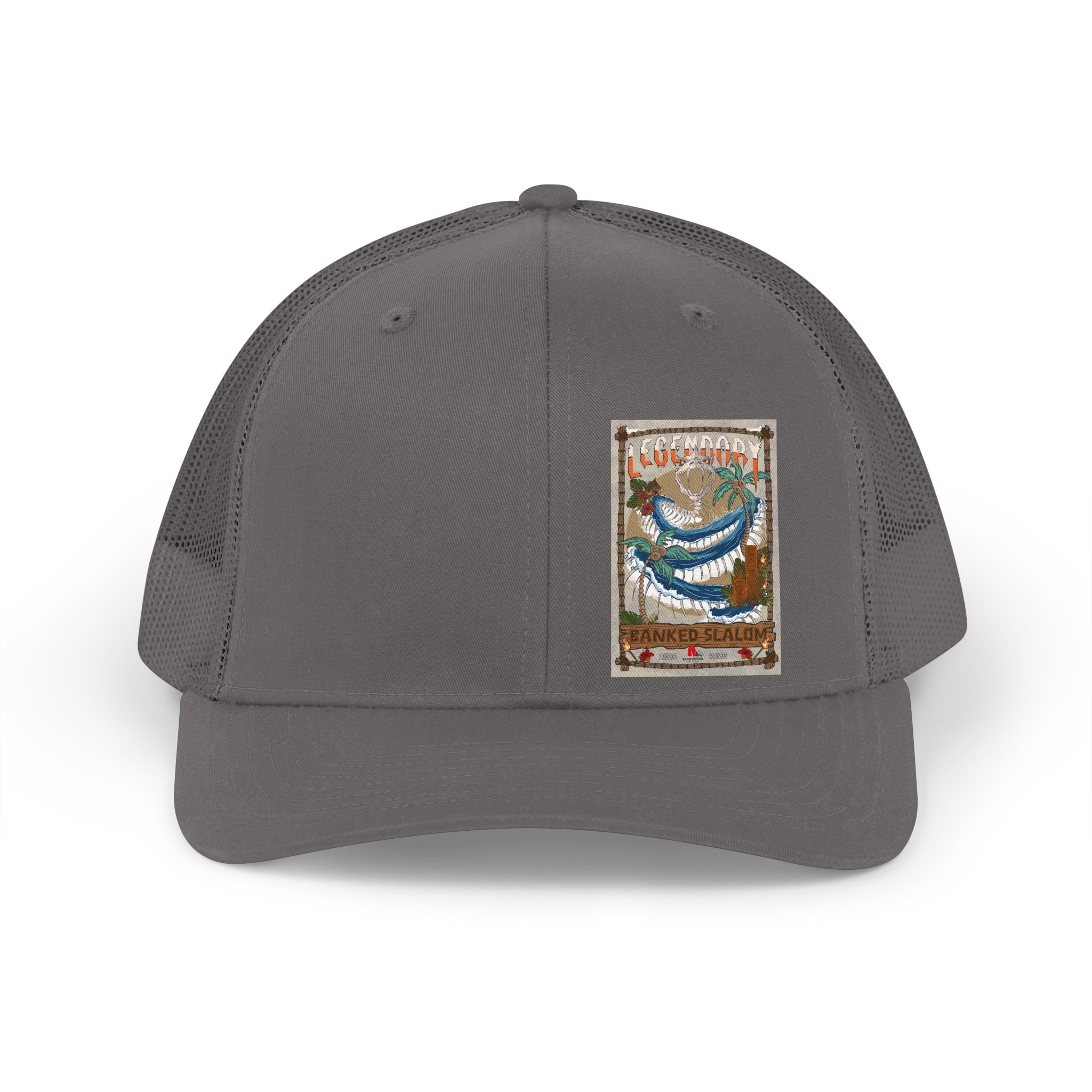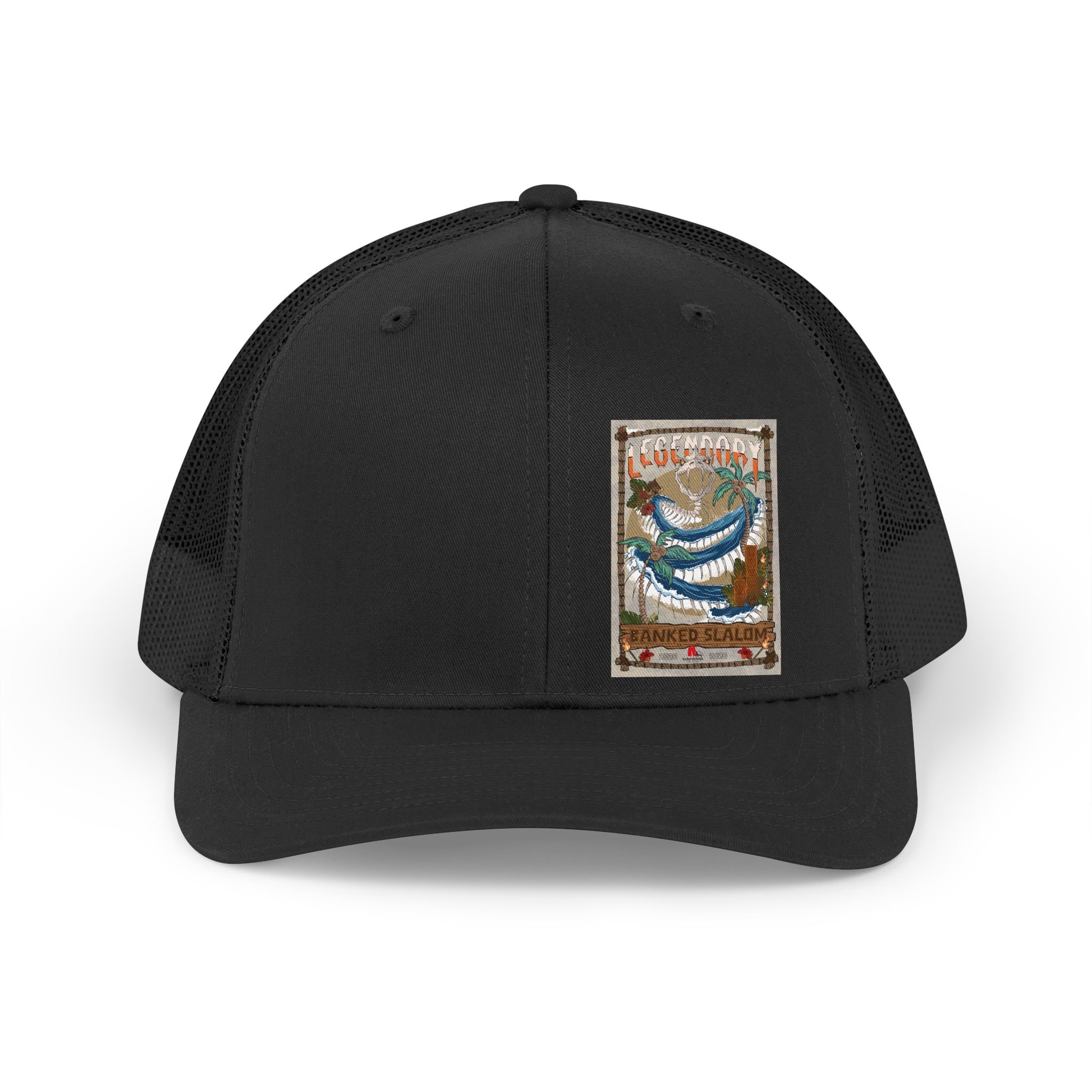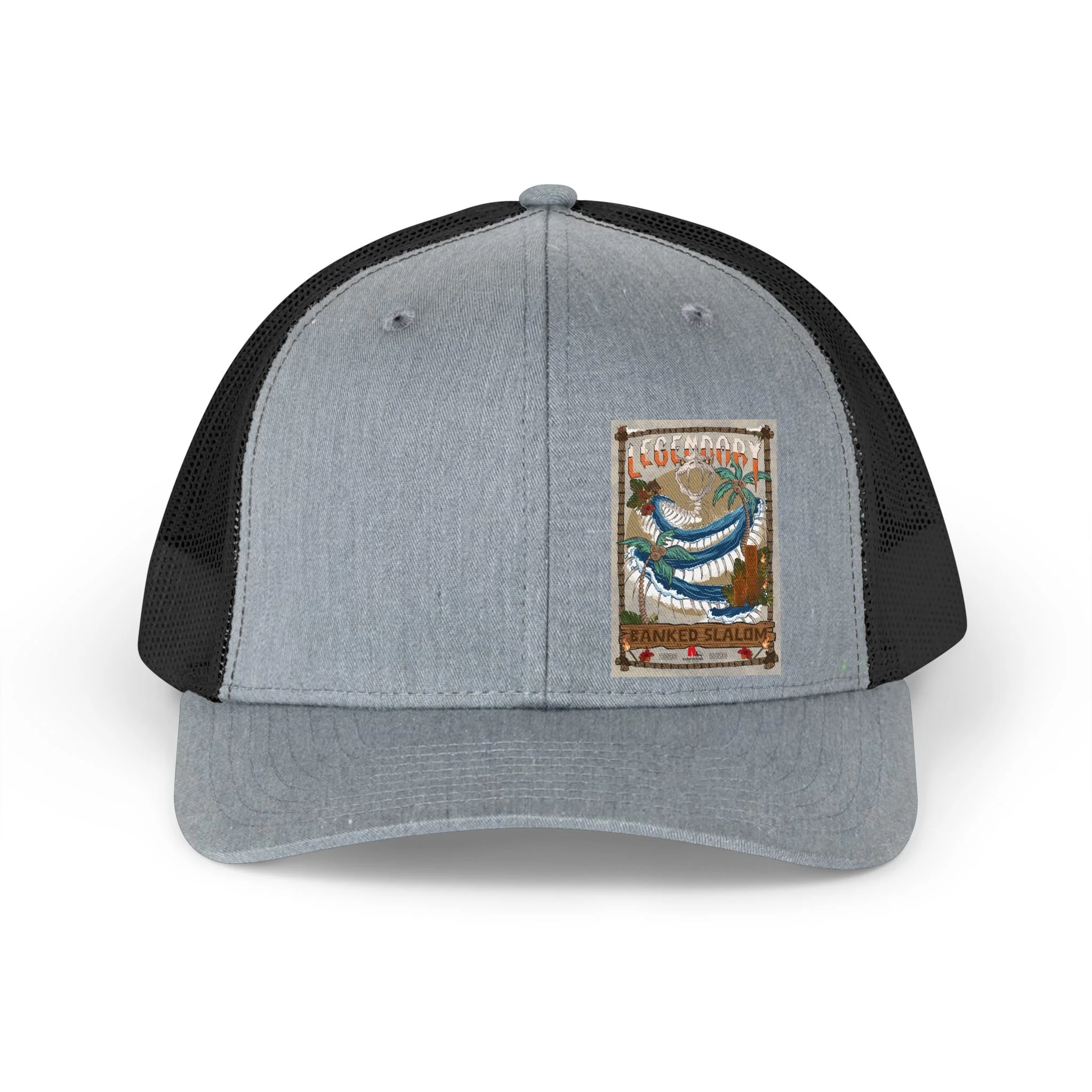 Step into the storied lineage of "KirkwoodMtn" with the 33rd Annual Legendary Banked Slalom Retro Fish Patch Trucker Hat. This vintage-inspired cap isn’t just headwear; it’s a tribute to the pioneers and the "skullduggarous" characters who built the culture - legends like Harpo, Boucher, Tele-Rob, Surfhan, RatsaPhil, Jimmy D, Jonny Rotten, and those nefarious souls we keep off the record for "security reasons."